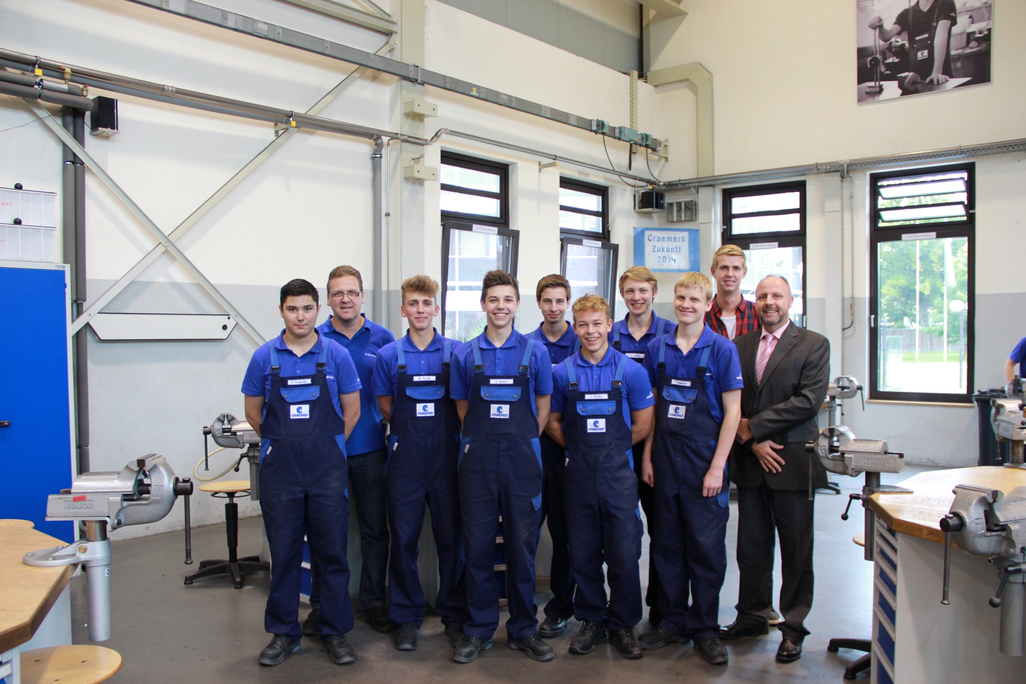 Zu den Berufsstartern gehören die Auszubildenden Tim Ellebracht (Industriekaufmann), Denis Becker, Lukas Lotte und Christian Schäfer (Werkzeugmechaniker), Süleyman Akagündüz und Michelangelo Piccolo (Verfahrensmechaniker für Kunststoff- und Kautschuktechnik), Tobias Rosendahl (Fachkraft für Metalltechnik) sowie Markus Diekhans (Zerspanungsmechaniker).