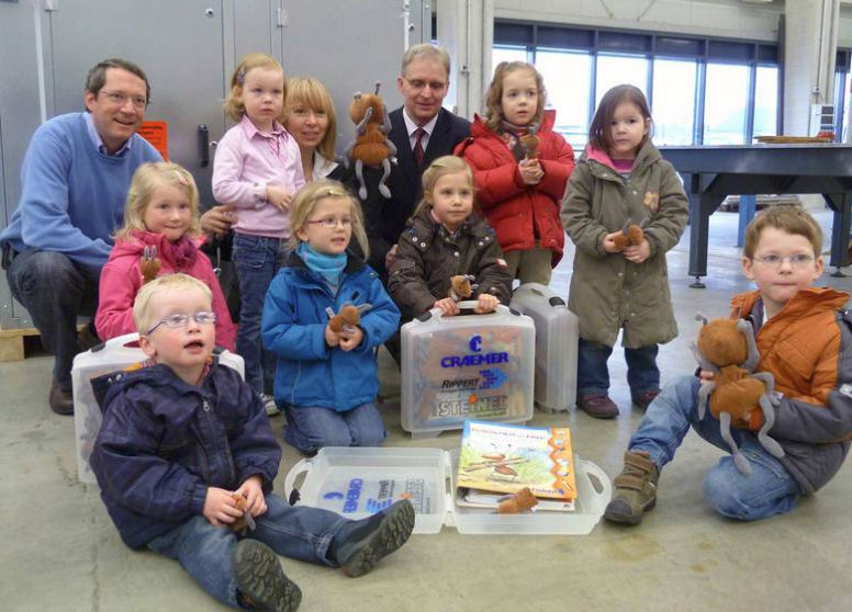 In einer Gemeinschaftsaktion haben die Herzebrock-Clarholzer Unternehmen Paul Craemer GmbH, Steinel Vertrieb GmbH und Rippert Anlagentechnik GmbH & Co. KG kostenlos je einen Experimentierkoffer „Forschen mit Fred“ an die ortsansässigen Kindertagesstätten verteilt. Hierzu luden sie jetzt Vertreterinnen der sieben Kindergärten mit je ein bis zwei Kindern zur Firma Rippert ein.